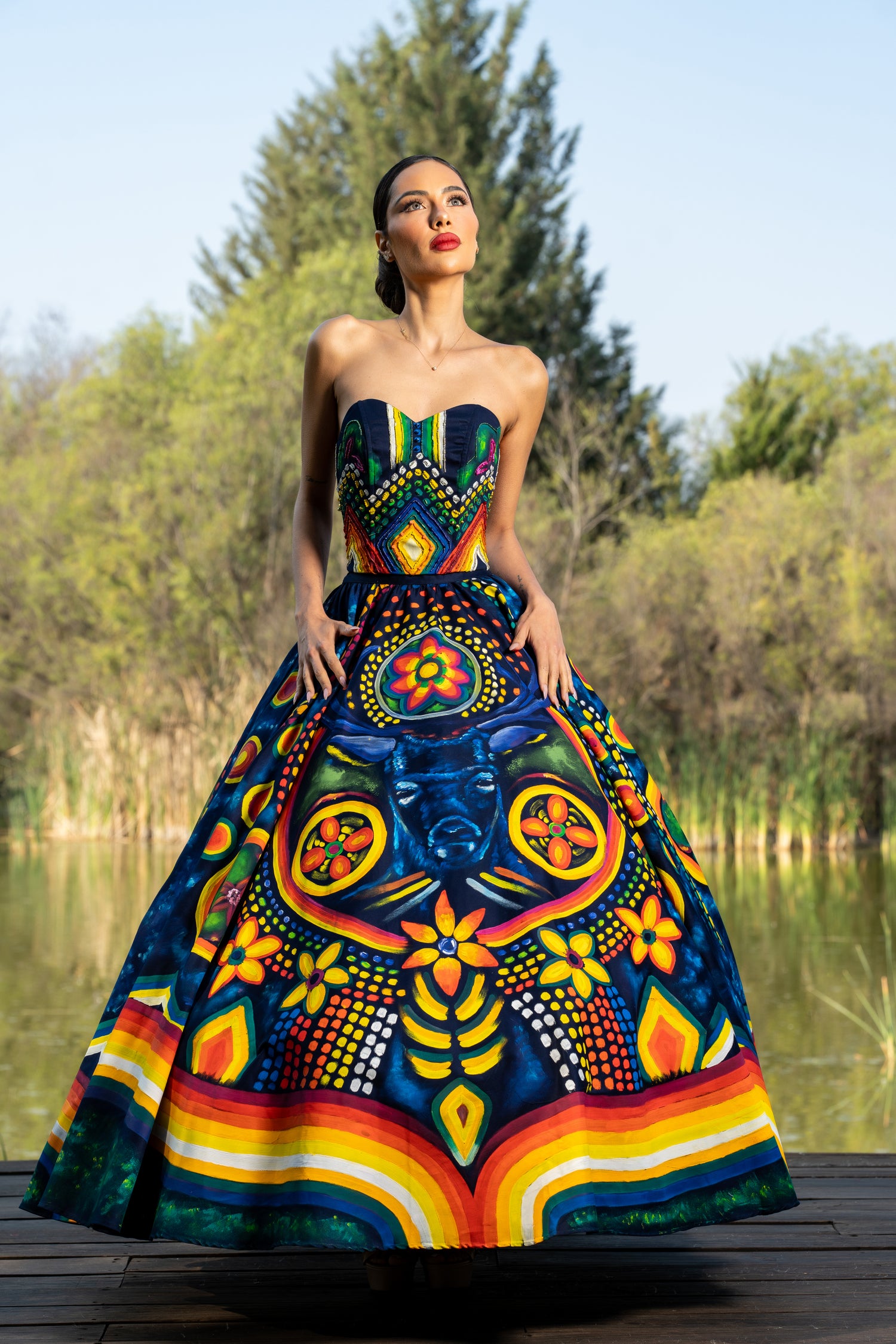Todas nuestras prendas son pintadas por artistas y bordadas a mano por gente de comunidades, realizadas en San Miguel de Allende, Guanajuato, México